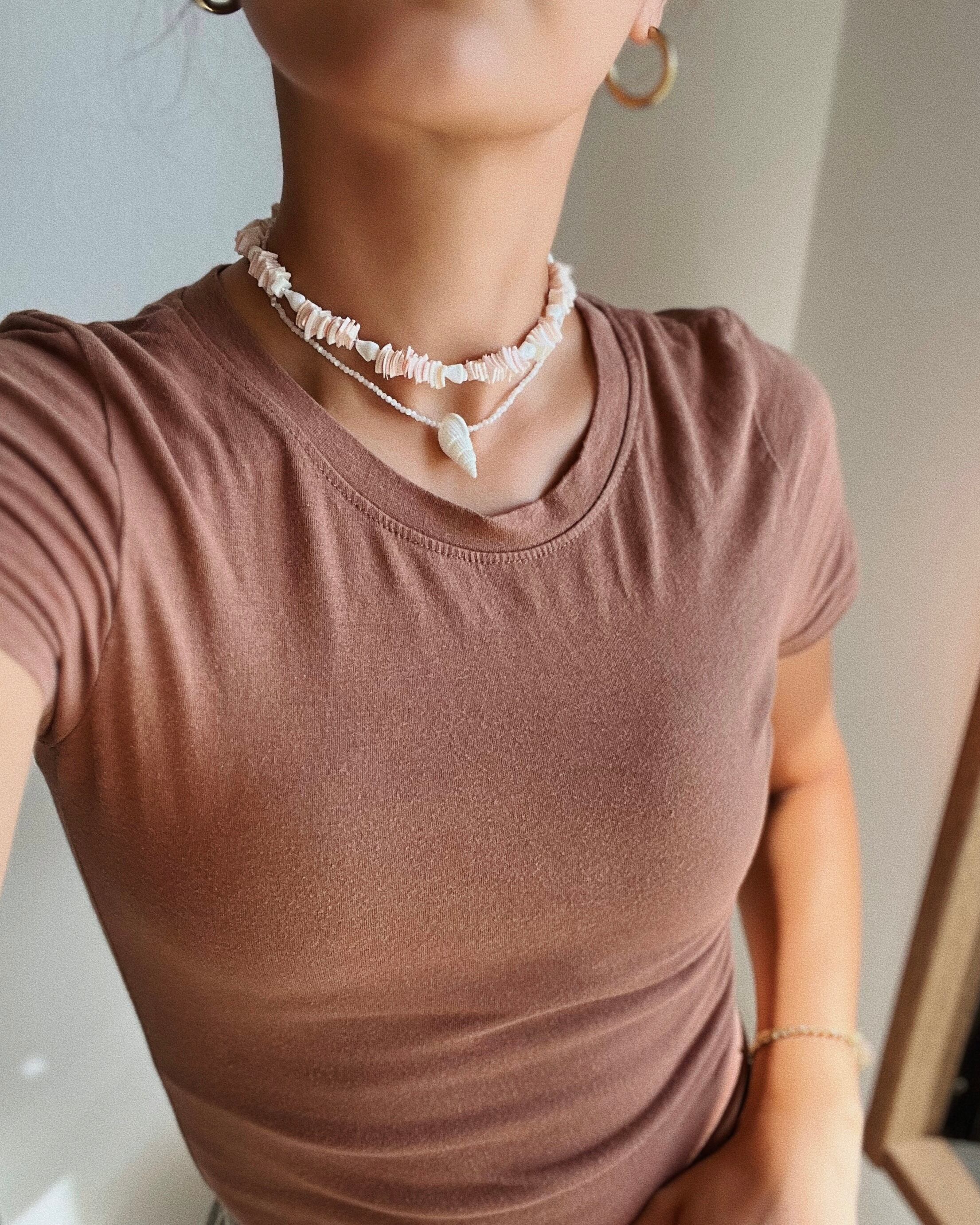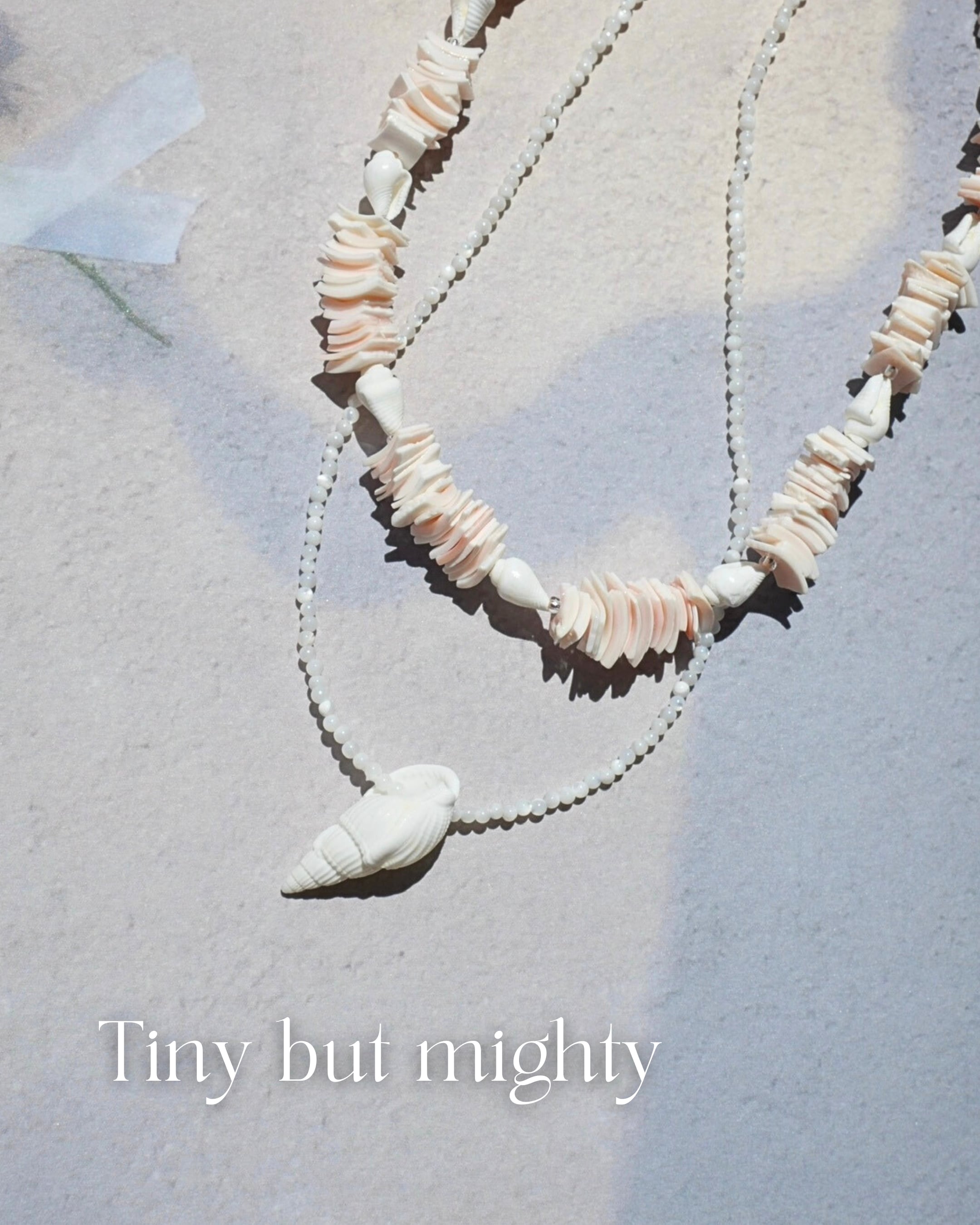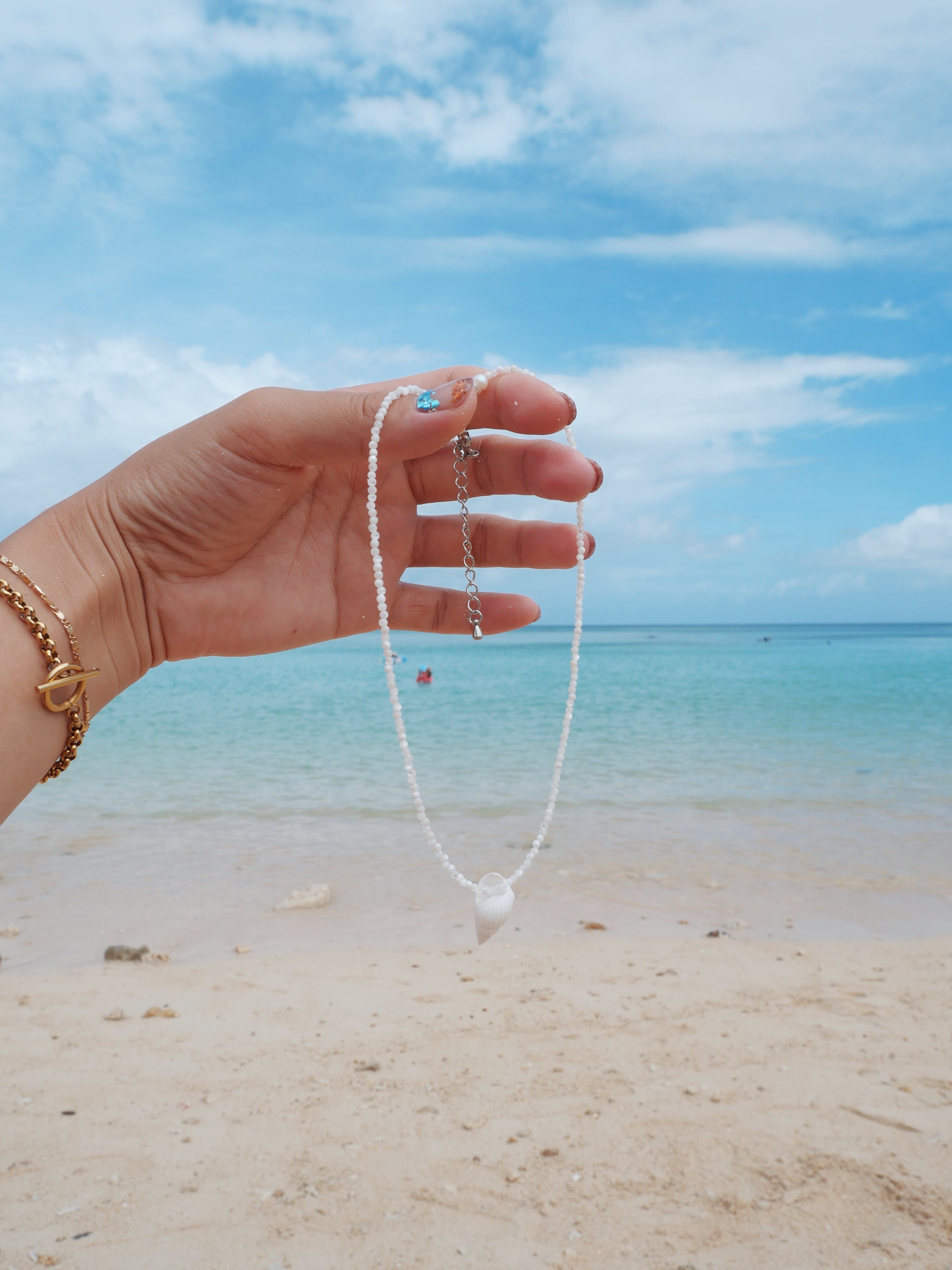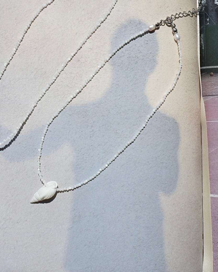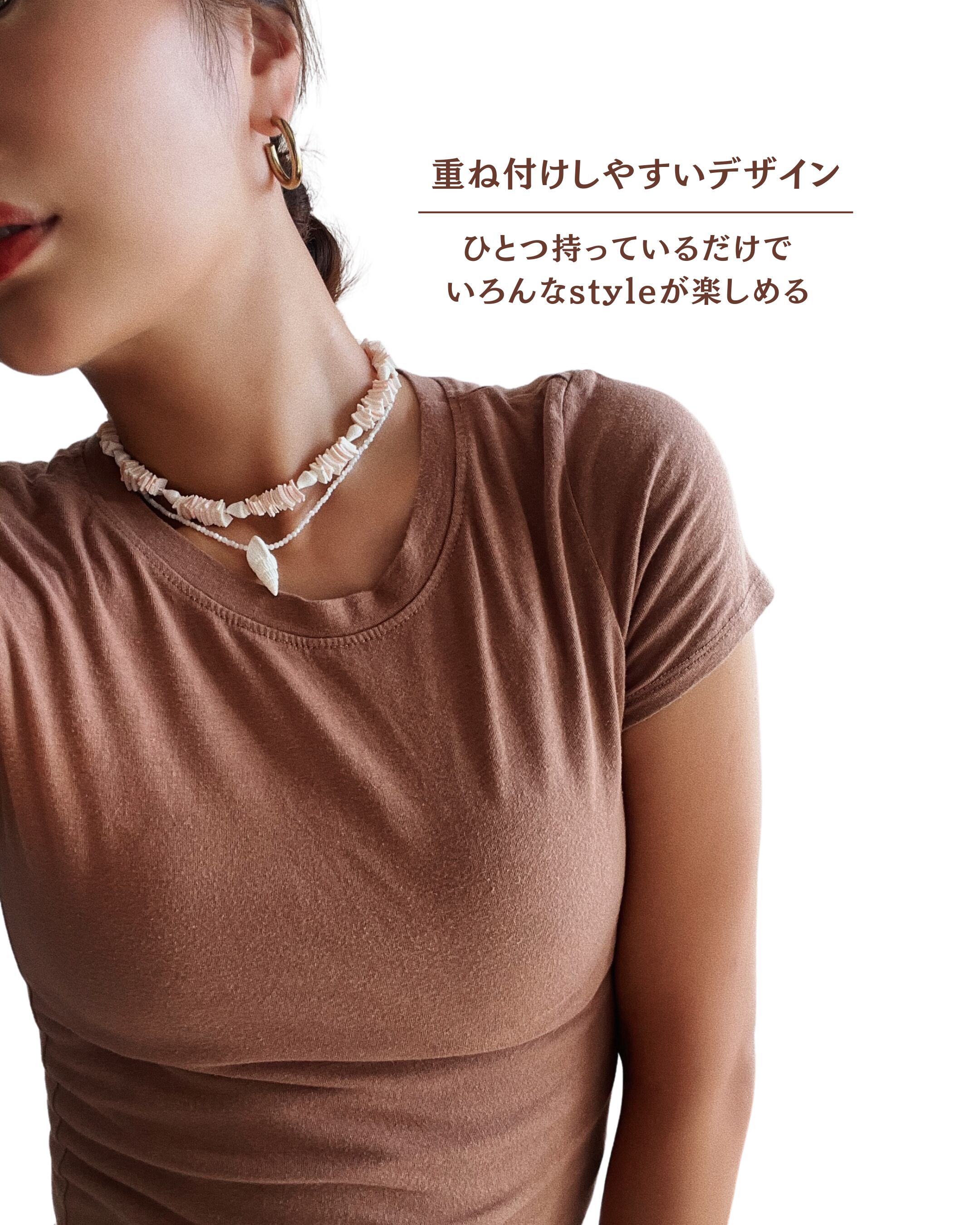 肌の上でキラっと映えるシェルジュエリー